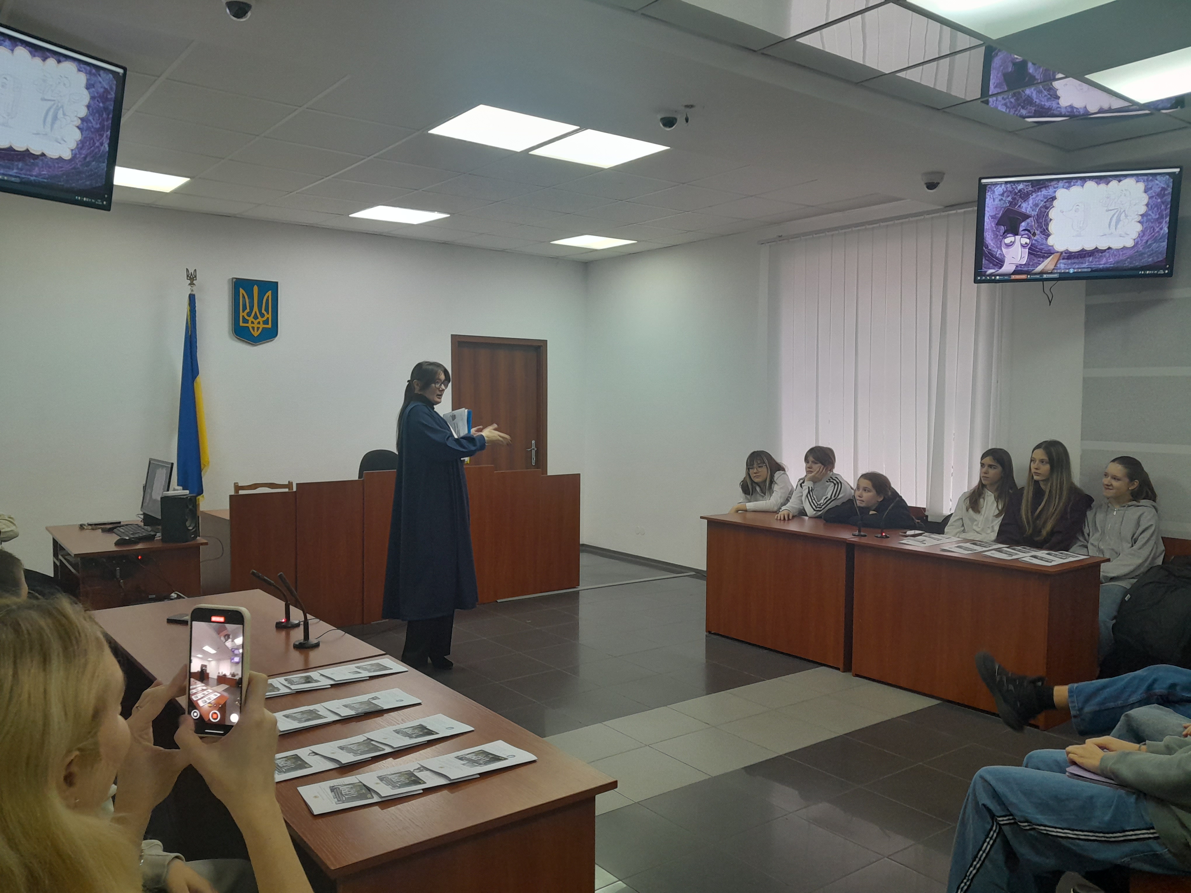 05 грудня 2025 року суддя Господарського суду Дніпропетровської області Юлія Фещенко за участю працівників апарату суду провела «Урок справедливості» для учнів 7-Б класу НВК №148 «Планета Щастя».