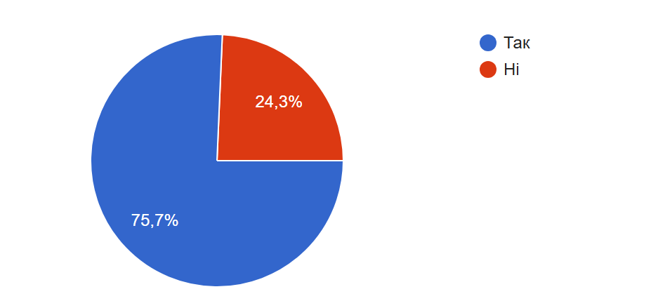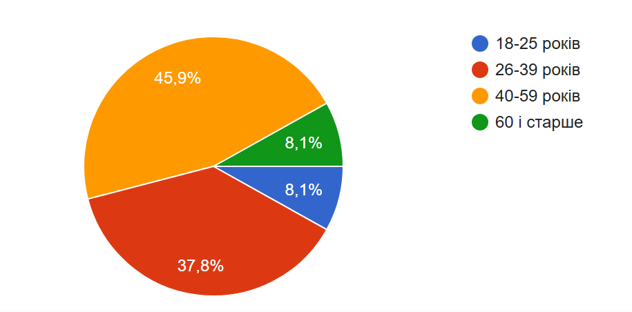 До опитування долучилися 37 осіб, яким ми висловлюємо вдячність та запевняємо, що інформація, отримана з відповідей є цілком конфіденційною та була використана виключно в узагальненому вигляді.